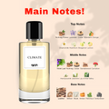 CLIMATE has blending fresh citrus, spicy nutmeg, and leathery accords with a smoky woody base for a bold and masculine scent.