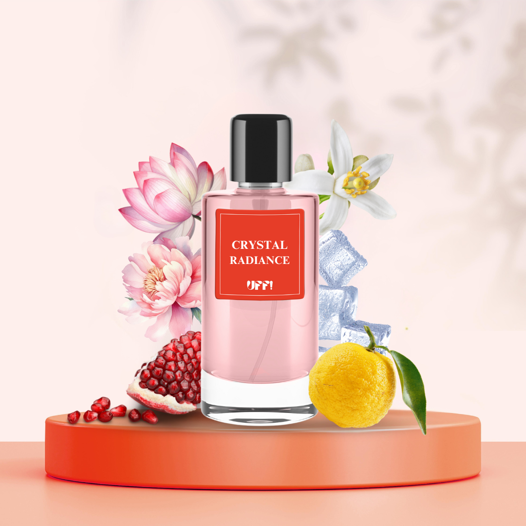 Crystal Radiance offers a radiant blend of pomegranate, peony, and musk, creating a fresh, floral fragrance that exudes elegance and sophistication with a vibrant allure.