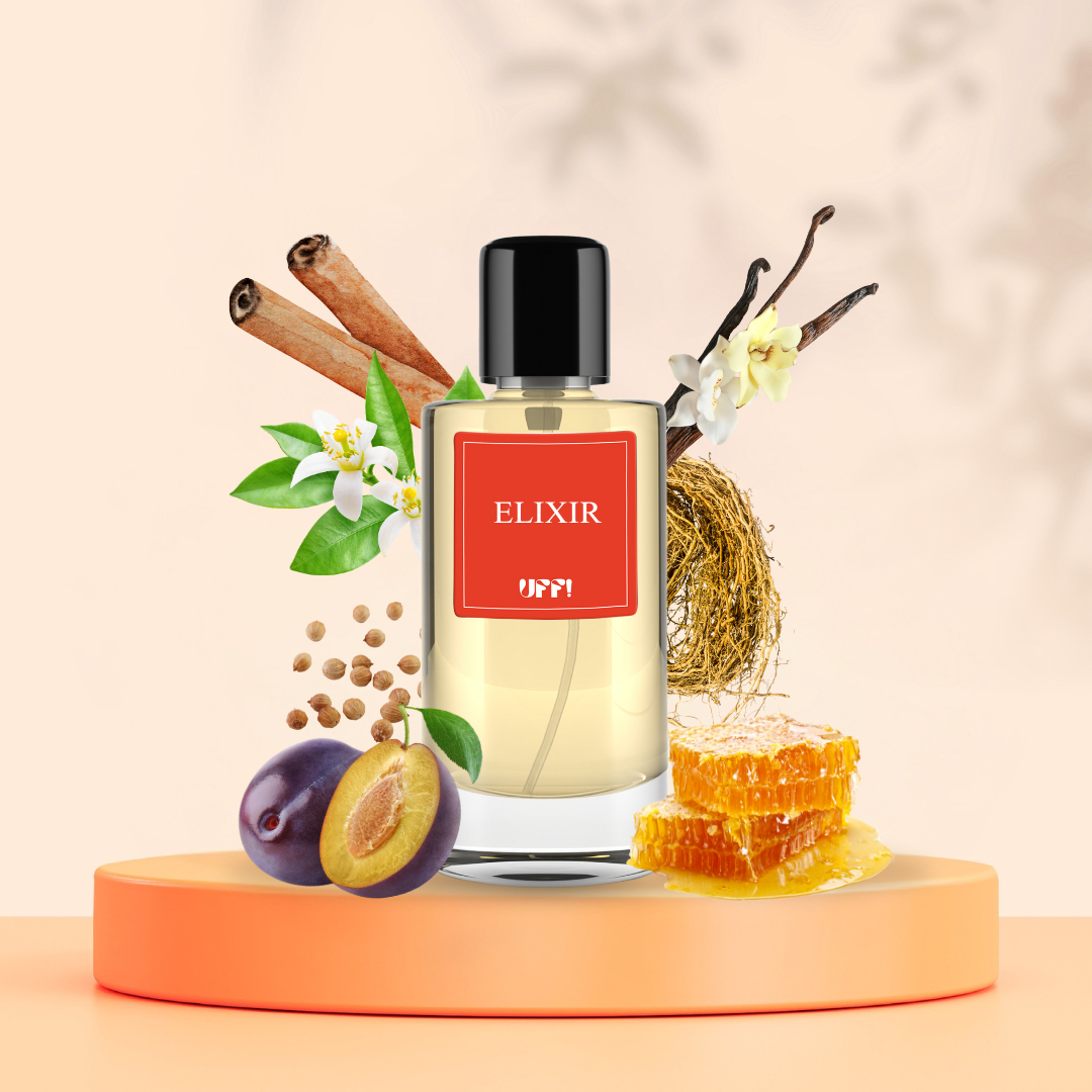 Elixir exudes a captivating blend of exotic spices, rich florals, and sensual vanilla, creating a bold, mysterious scent perfect for unforgettable, alluring elegance.