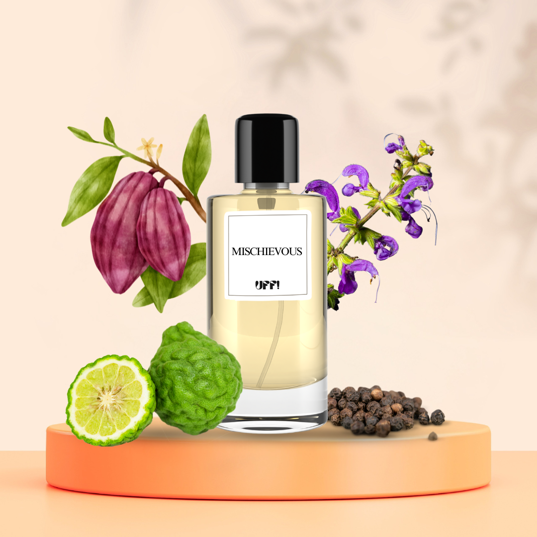 MISCHIEVOUSĀ is aĀ spicy-woody revelationĀ for men who command attention. It erupts with anĀ electrifying trio of white pepper, pink pepper, and bergamot, matures into aĀ sophisticated heart of cedarwood and clary sage, then seduces with aĀ decadent base of tonka bean and cacao.