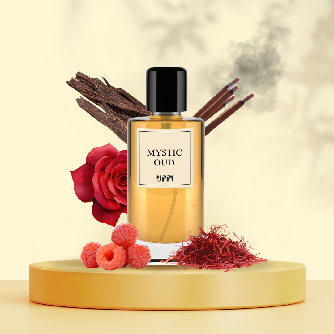Mystic Oud features a rich blend of exotic oud, sensual leather, and warm spices, offering a luxurious, opulent fragrance for an unforgettable presence.