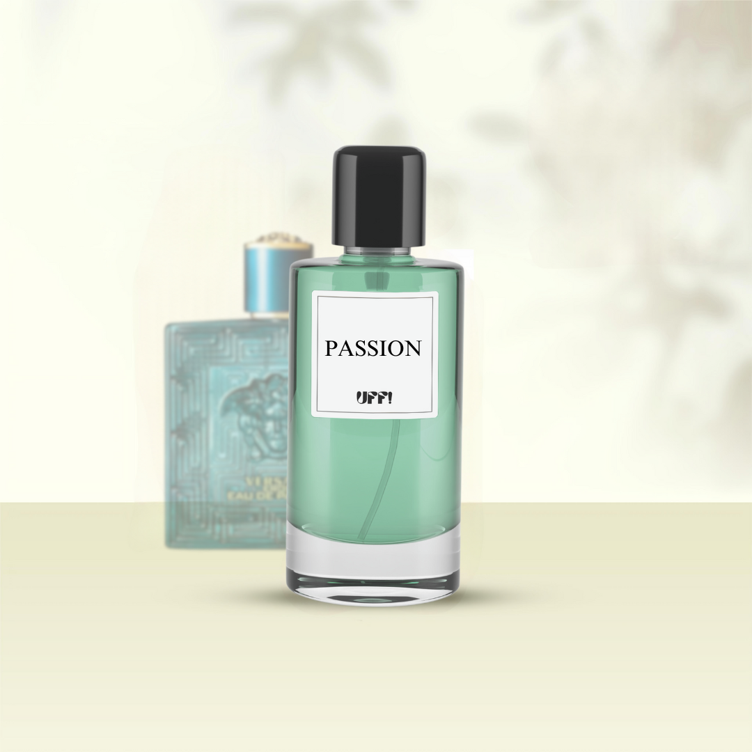Passion combines vibrant notes of mint, lemon, and green apple with warm vanilla and tonka bean, creating a bold, passionate scent that embodies strength and desire.